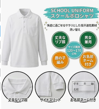夏~秋にかけてなので、幼児教室・体験/説明会用に長袖・半袖両方購入しました。