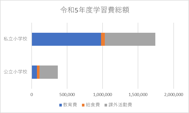 このグラフからも私立小学校にかかる費用が圧倒的に多いのは一目瞭然です。